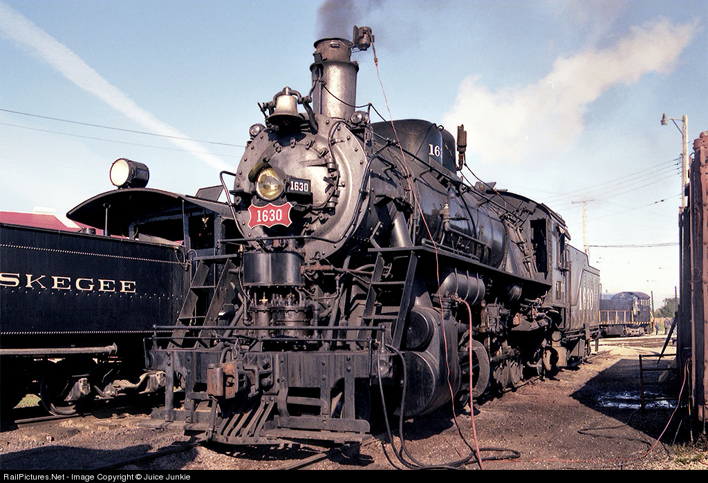 St Louis-San Francisco Railway 2-10-0 No 1630 was built by the Baldwin Locomotive Works in 1918. She has 52 inch drivers, 24 x 28 inch cylinders, operates at 160 lbs of boiler pressure, and can produce up to 42,180 lbs of tractive effort. She is one of the Russian decapods that stayed in the United States and was instead sold to the Frisco. After being retired she was sold to the Eagle-Picher mining company and eventually donated to the Illinois Railway Museum. She is shown here in the process of being fired up in the morning for the day's work.