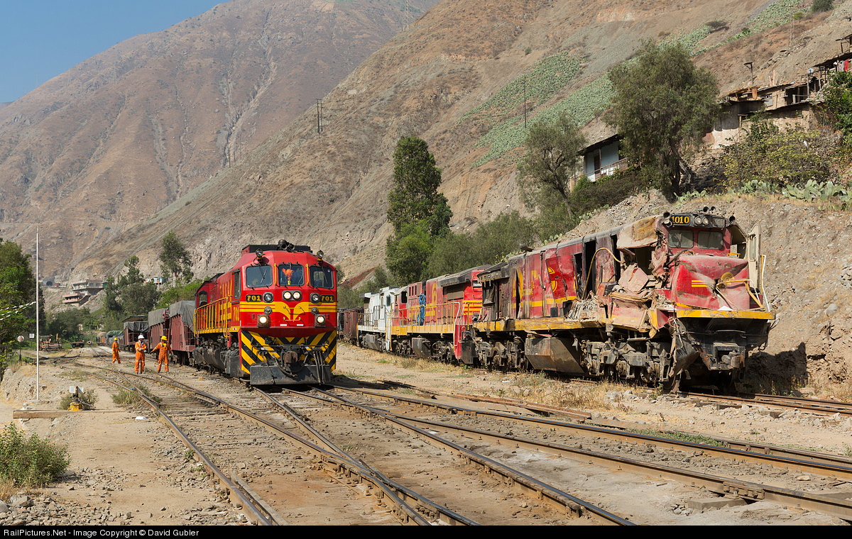 Because San Bartolomé is a switchback without counterpart, trains have to be re-arranged before they can proceed to Lima. After an epic one-hour shunting operation 701 is finally being coupled to the other end of the train. However it took another hour of shunting and checking until the train finally left...