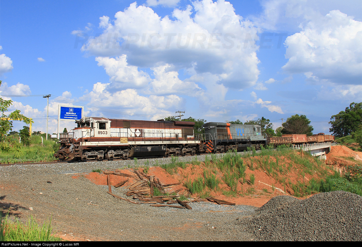 | Northbound empty U71 double heading BB36-7 locomotives, running from Botuxim to Pirapitingui yard, photographed at Km 185. |