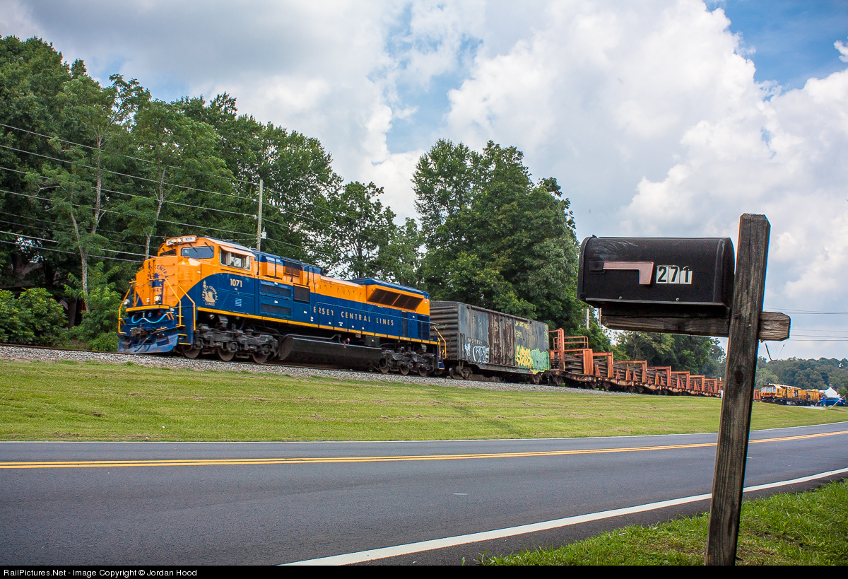 | A loaded rail train running from Roanoke, VA to the rail facility at Atlanta's Inman Yard cruises through downtown Norcross with NS' Central Railroad of New Jersey heritage unit as the lone motor. The train would hold around Chamblee to let intermodal 221 around, also sporting a heritage leader in the form of ES44AC #8100 in Nickel Plate Road dress. |