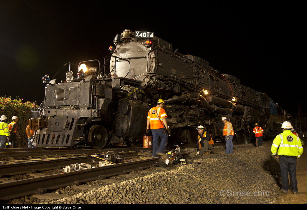 January 26th, 2014. 2:52:58 AM, 4014 rolls down the National Rail Network for the first time in 52 years! The front wheel of the pony truck is still on the panel track while the rest of the locomotive is on the Metrolink main. Next stop: Covina California for a brief public display starting at 07:00.
