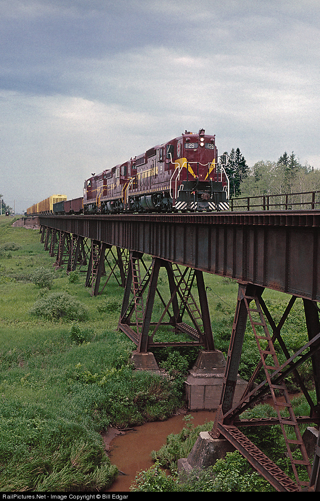 DMIR 129 heads a freight east towards South Itasca, WI and the CNW interchange. This unit is painted in original "heritage" DMIR scheme, and was one of two steam generator equipped SD9s on the railroad. It was later sent to Birmingham Southern, which was unfortunate in that it should have been donated to the Lake Superior Transportation Museum.