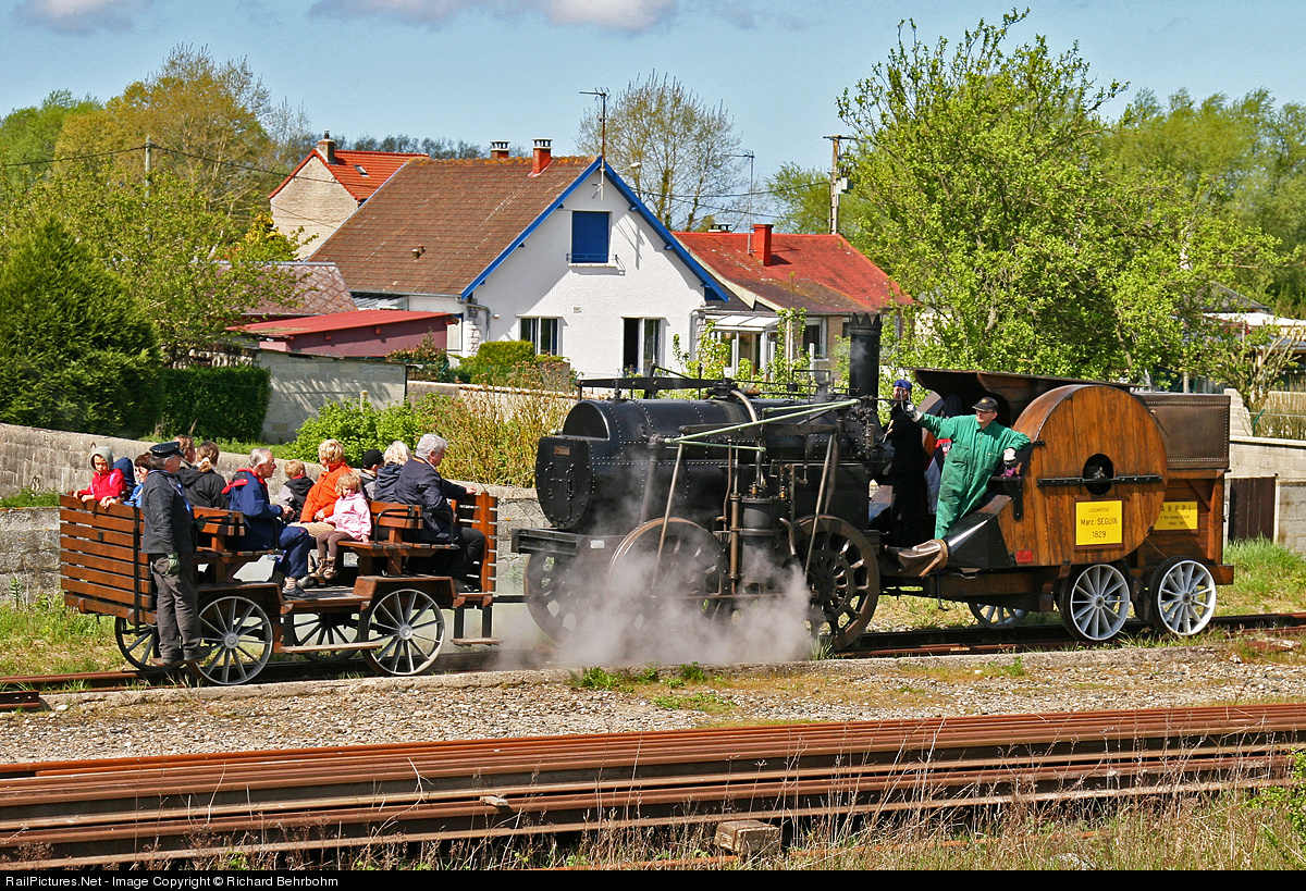 Replica of 1829 locomotive Marc Seguin (1786 – 1875). He was a French engineer and delivered two steam locomotives of his own design with an innovative multi-tube boiler to the Saint-Étienne–Lyon railway in 1829.