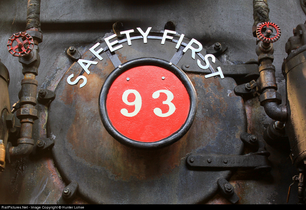 Nevada Northern 93 carries its original number plate the railroad built for it along with the safety first sign