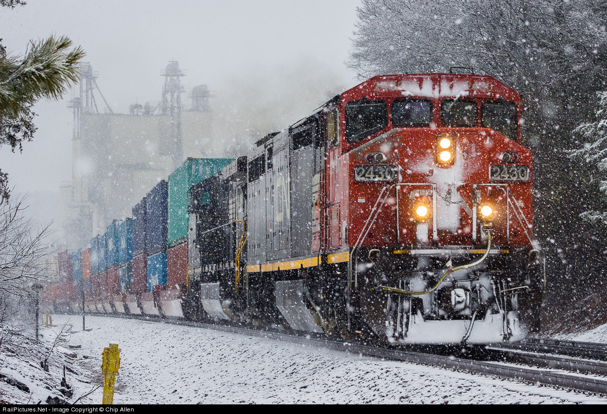 Is Canada taking over North Georgia? All jokes aside, an entirely unsuspected Canadian National cowl body Dash 8 leads Charlotte to Atlanta intermodal 221 through an odd second snowstorm of the season. I don't believe anyone knew this engine was in the south, and nobody saw it on 222 last night, so this was quite the shock. I guess it brought the snow with it, eh?