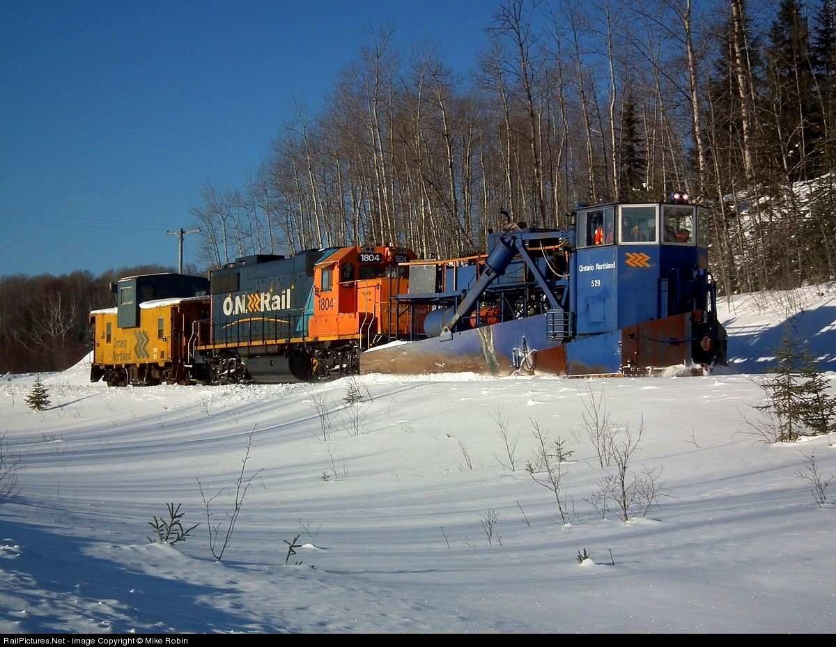Northbound Plow Work 1804 (spreader 529, GP38-2 1804, and Caboose 124) kicks of a long day of spreading snow along the 186 mile long Island Falls Subdivision February 8th, 2014