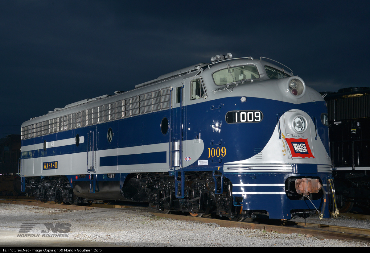 Wabash E8A #1009 was the 10,000th diesel locomotive built by Electro-Motive Division, commemorated on June 14, 1951, at its LaGrange, Illinois, facility. After retirement, it went to the Virginia Museum of Transportation in Roanoke, Virginia. After falling victim to a flood in 1985, the unit fell into a state of disrepair for many years. During 2012, it went to Norfolk Southern's East End Shop in Roanoke for a cosmetic rebuild, and again moved to the NS paint shop in Chattanooga, TN, at the end of 2013 where it was painted into its as-delivered scheme. The final touches were applied on March 3, 2014, and 1009 looks as good as new again. It will return to display at VMT, and is planned to celebrate its 63rd birthday during the "Streamliners" event at the North Carolina Transportation Museum in Spencer, North Carolina, from May 29 through June 1, 2014. Photo by Casey Thomason. For more information about Norfolk Southern, visit www.nscorp.com