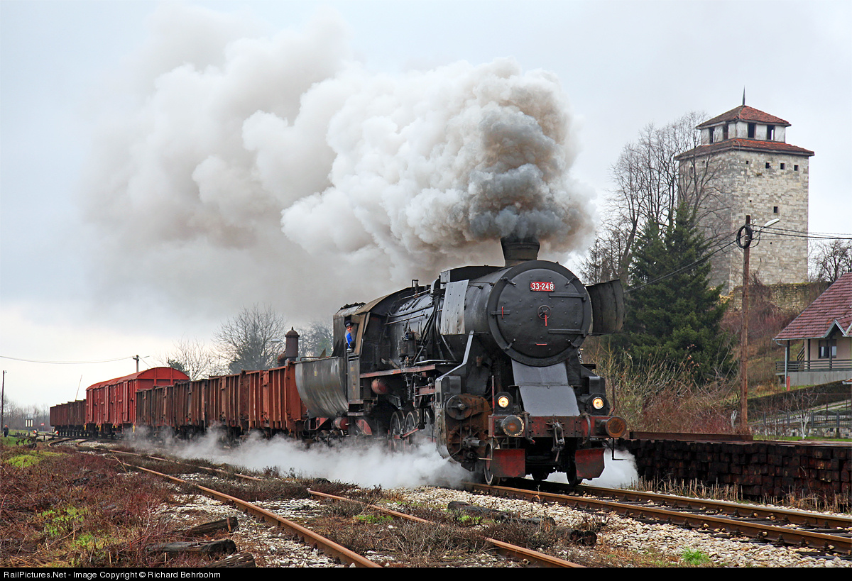 | 33 248, a Kriegslokomotive, is pulling a chartered freight train, organised by Plandampf Team LoRie. |