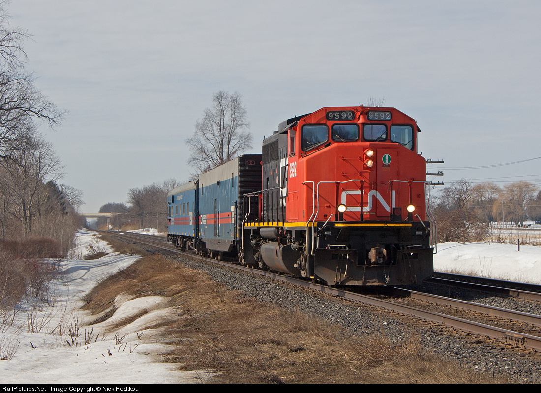 CN 9592 leads a test train towards London where they will wye and return west.