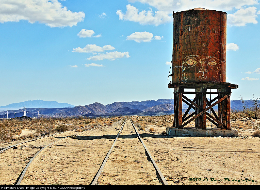 Looking South Into Mexico - The abandoned water tower at Dos Cabezas California (San Diego County) sits in the Sonoran Desert in Southern most part of Anza Borego State Park as monument of a bygone era when steam engines operated on the desert line through the Carizzo Gorge between El Centro and San Diego.