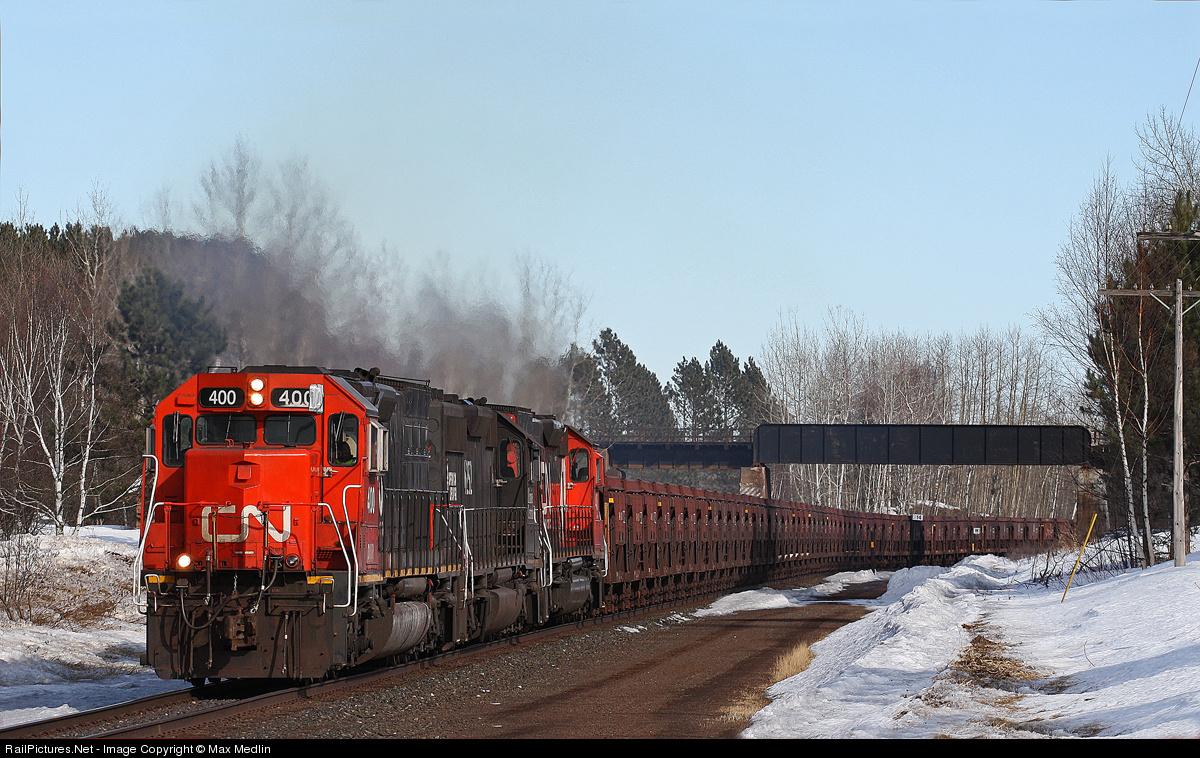 | For years the DMIR #400 has escaped my glass in good light and leading, but I finally shot the class unit of the Missabe SD40-3's as #400 and sister #406 lug tac empties back to U-Tac for loading. |