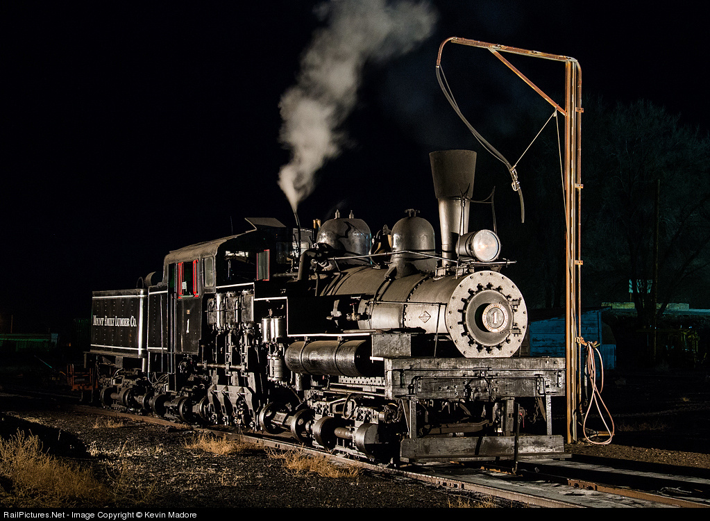 Mt. Emily #1 was built in 1923 by the Lima Locomotive Works in Lima, OH. She was originally built as a stock locomotive and was first sold to the Independence Logging Company of Aberdeen, WA. In 1928, she was resold to the Mt. Emily Lumber Company in LaGrande, OR, where she worked for the next 30 years doing what Shays do....hauling logs on steep grades. In the mid-1950s, modern trucks took over the log-hauling business, and #1 was retired. She was first donated to the Oregon Museum of Science....but they didn't quite know what to do with her. Later, she was transferred to the Oregon Historical Society (OHS), which eventually leased her to the Cass Scenic Railroad, where she ran for 20 years. When that lease expired in the early 1990s, the OHS again went looking for a home for #1. With the help of attorney Martin Hansen and the City of Prineville Railroad, she has indeed found a home. She is stored by the railroad and occasionally operates on passenger excursions as well as photo charters on this very pretty line in Central Oregon.