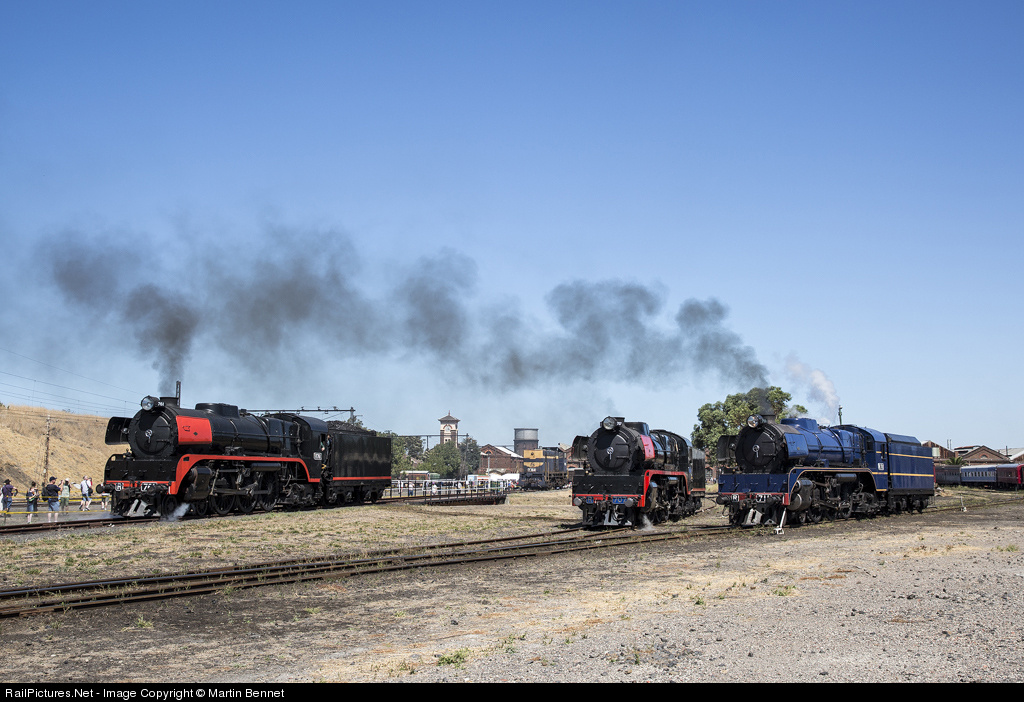 | All three operational R class line up at Steamrail Victoria's 2014 open day, coal burners R761 and R707, and oil burner R711. |