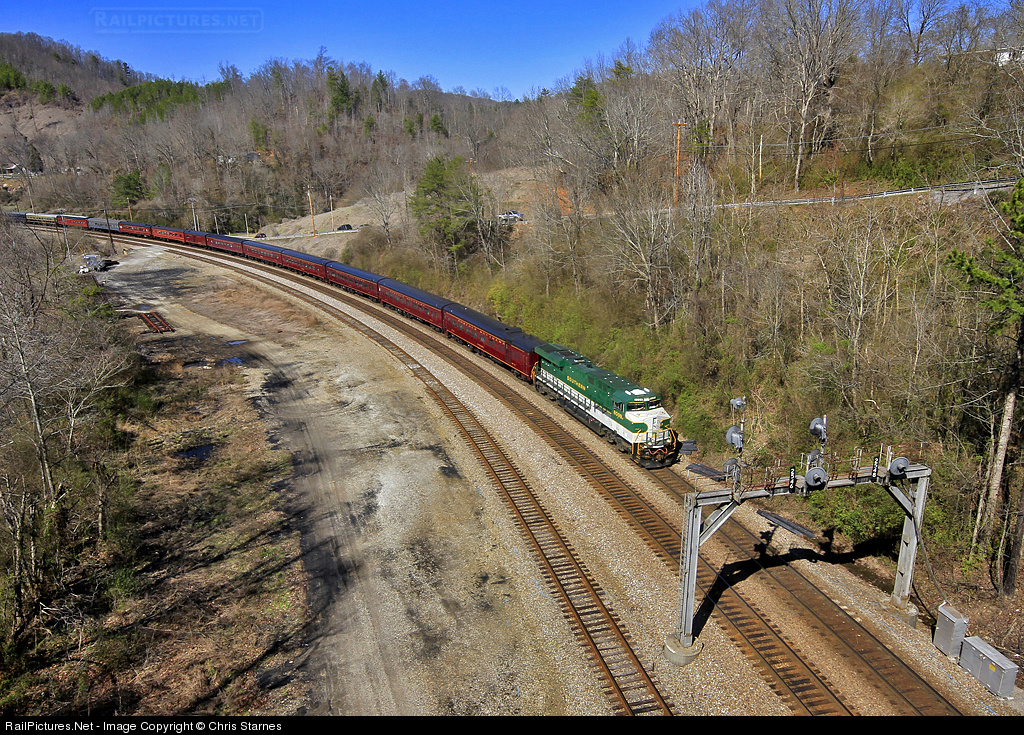 Due to Southern 630 still undergoing mechanical work at Tennessee Valley Railroad Museum, Norfolk Southern provided the Southern Railway heritage locomotive to power the TVRM/NS Chattanooga - Oneida passenger excursion round trip. The special is seen here on the southbound leg of the journey at Oakdale, TN passing one of the few remaining searchlight signal bridges left standing in the wake of recent signal upgrades.