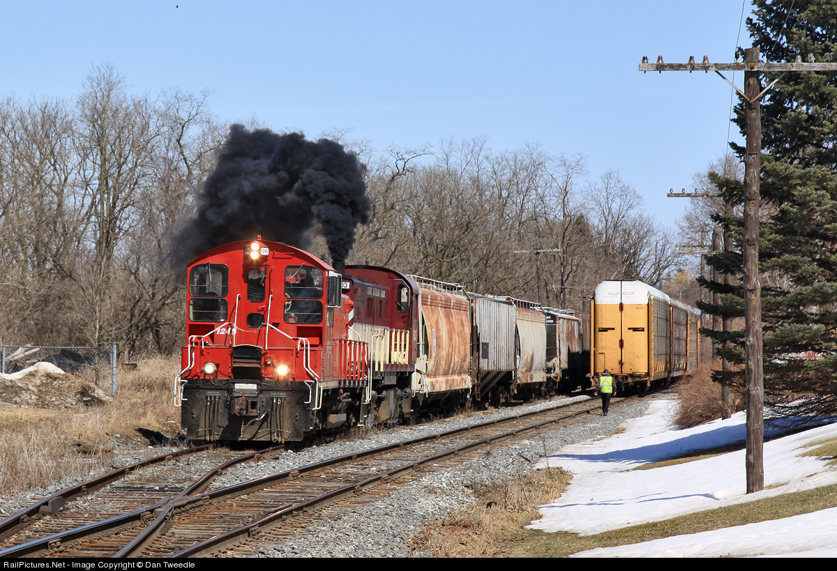 OSRX 503 smokes it up behind 1245 at Beachville as they lift a single covered hopper to be spotted at Agrium in Putnam.