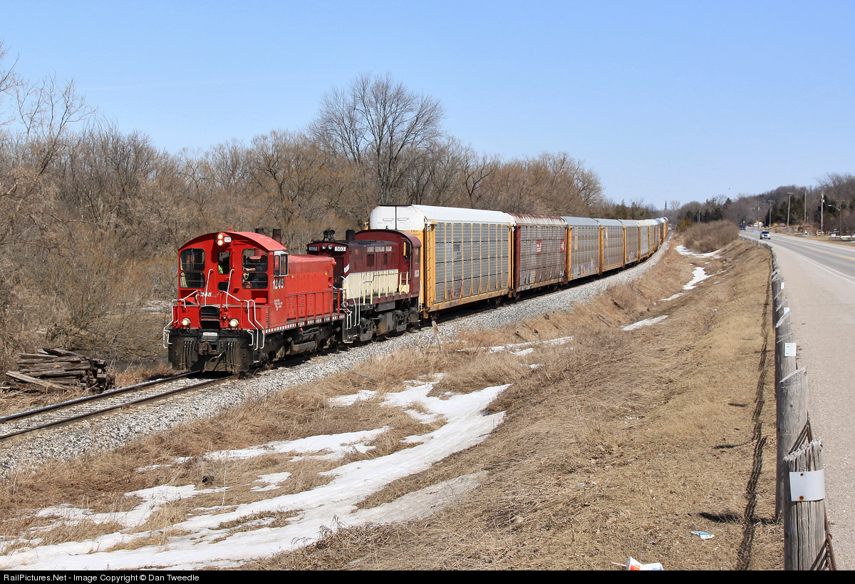 OSRX 1245 leads the Woodstock Job back along the St. Thomas Subdivision with multis from CP for CAMI.