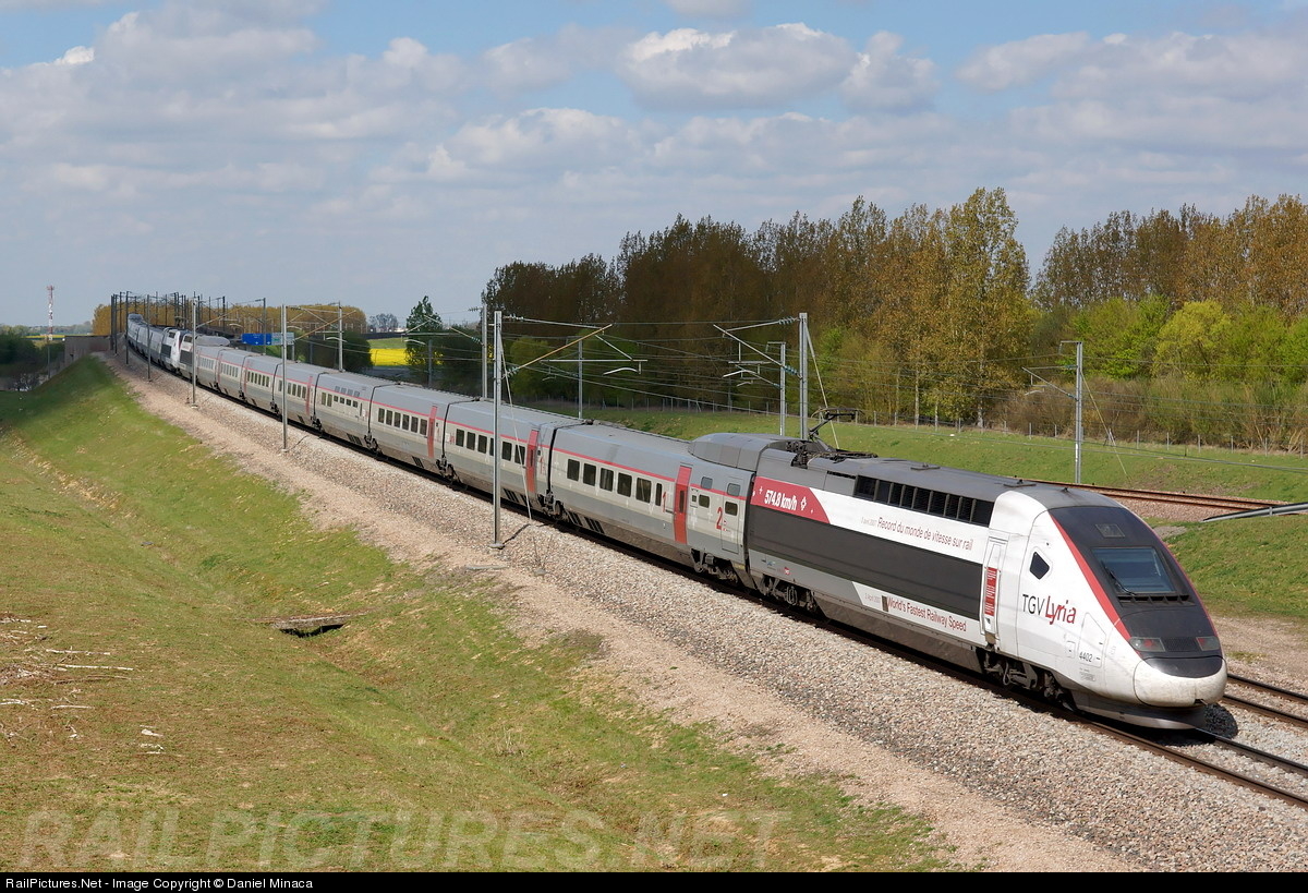 This is the world's faster railway train ! This trainset have run at 574,8 Km/h the April 3, 2007 (see RPN #227277 here www.railpictures.net/viewphoto.php?id=227277). After world record, only engines was returned to normal service and have now the Lyria livery where only some red markings who remembers the famous performance of this train.