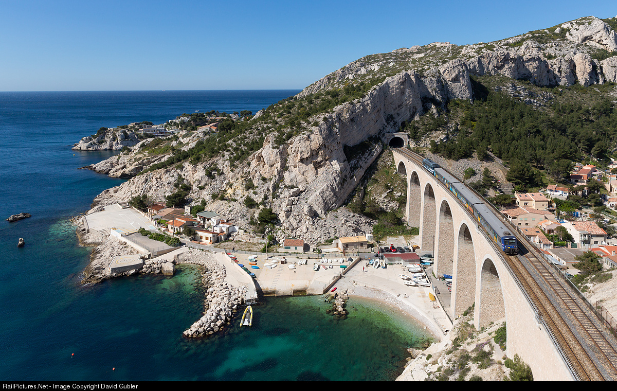 A local train from Marseilles to Miramas just before arriving at Niolon.