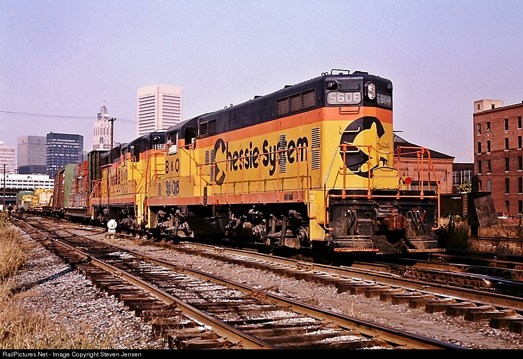 | 5608 and 1833 making a set off at Hamburg St. (HB Tower) in Baltimore. This was not a through freight, but a run that came over from the east side of town and was going to Riverside. From the Collection of Tim Cronin |