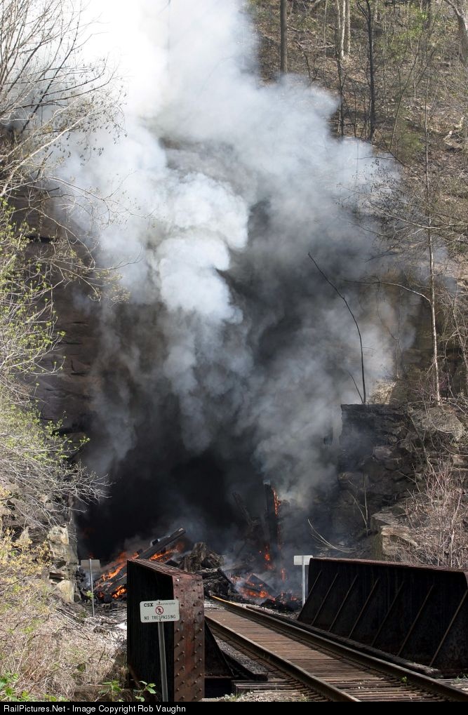 An arsonist is suspected of setting the timber-lined Douglas Tunnel ablaze in the early morning hours of Sunday April 27th. Douglas is on the busy former C&O (ex B&O) Sandy Valley & Elkhorn Subdivison around milepost CMN 6.5 in Pike County, KY. The line serves the TECO Myra Complex and Rhino Energy's Damron Fork mines, both heavy tonnage shippers worked out of Shelby Yard. The impact on a currently struggling Kentucky coal industry will be severe.