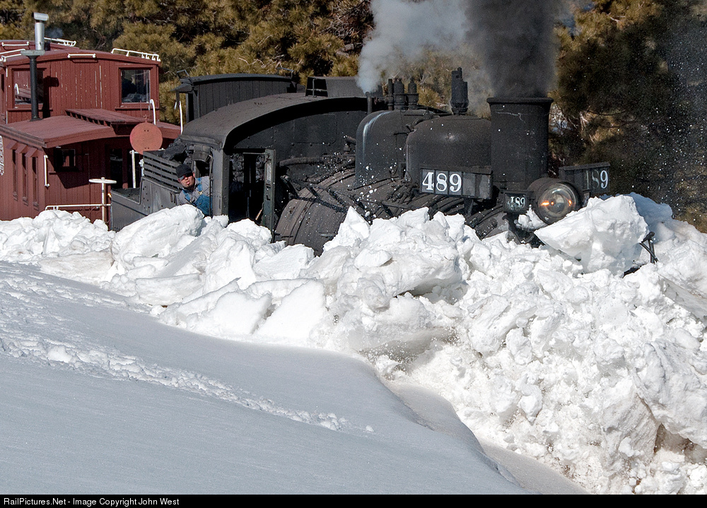 The snow flies and Engineer Max Casias watches intently as he makes another plunge into the deep snow drift, much as the DRGW might have cleared the line 60 years ago. It took five or six such plunges to clear the cut just west of Big Horn. On March 15 and 16, the C&TS ran work trains west from Antonito to see how far they could clear the line, and to provide some photo ops for about 30 photographers. The effort was sponsored by Historic Transport Preservation (Steam Specials).
