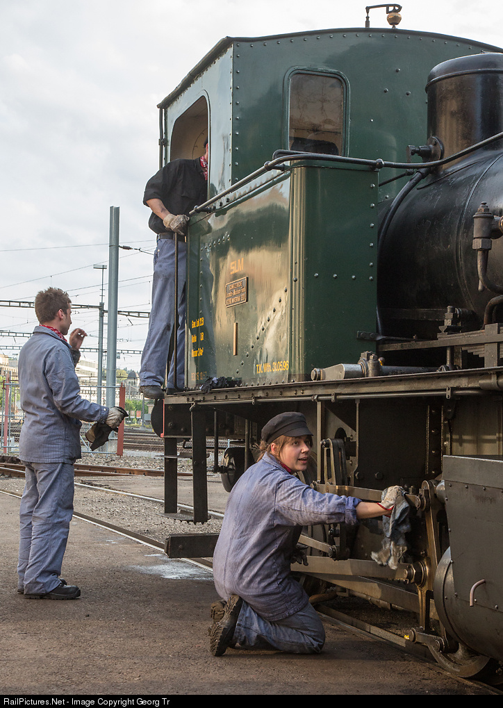 Light maintenance on steamlocomotive E 2/2 # 1 from 1910, the former works locomotive of the Swiss Locomotive and Machine Works (SLM), now in private hands. On this day, the locomotive made a shuttle train between Depot East and the SLM works area on the other side of the station, together with E 3/3 # 8518 of the DVZO.