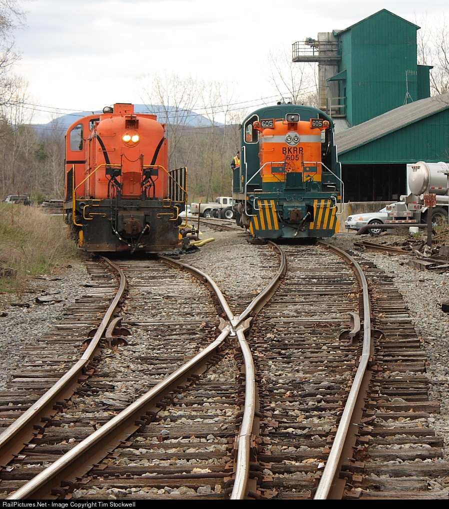 The Batten Kill Railroad continues to operate with two Alco RS-3s in 2014. Here at Greenwich Junction, we see the crew switching to the 4116 (left) from the 605 (right). The 605 brought empty intermodal wells for storage up from Shusan. The crew will use the 4116 to switch the nearby Cargill mill and then take the empty intermodal wells west.
