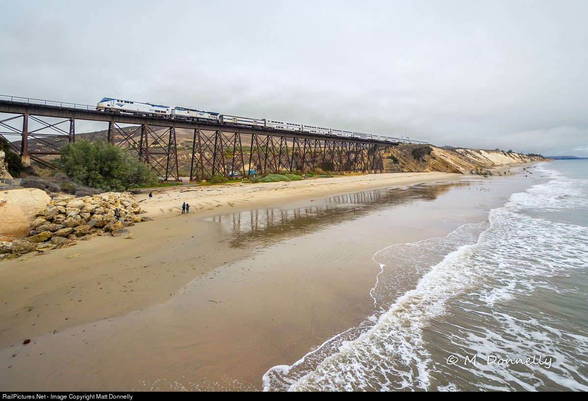 The northbound Coast Starlight heads over the trestle at scenic Gaviota State Park after a rain shower. This was my first visit here after seeing plenty of great pics from this spot. Although the weather was damp, this spectacle didn't disappoint.