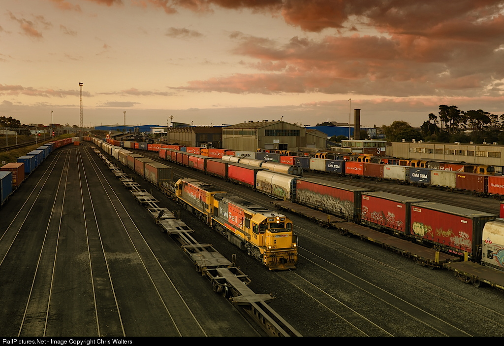 Trains on 3' 6" (1.067m) track from Whangarei to Bluff with virtually heritage rebuilt EMD and GE locomotives still the mainstay power. The network was privatized in 1990's and operated by Toll until 2008 when state owned KiwiRail was established.