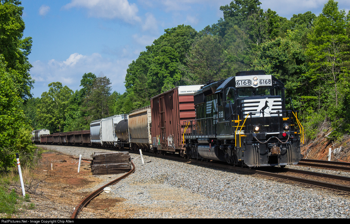 NS local train P16, which runs from Gainesville to Commerce via the NE-Line (Commerce Branch), slows to stop and let out conductor Jack to line the train onto the branch line. One person had already run around the gates ahead of the train, and when the one beside me began to go, I stood in the dead middle of the open lane to prevent this action. The crew responded with waves and some blasts on the P5.