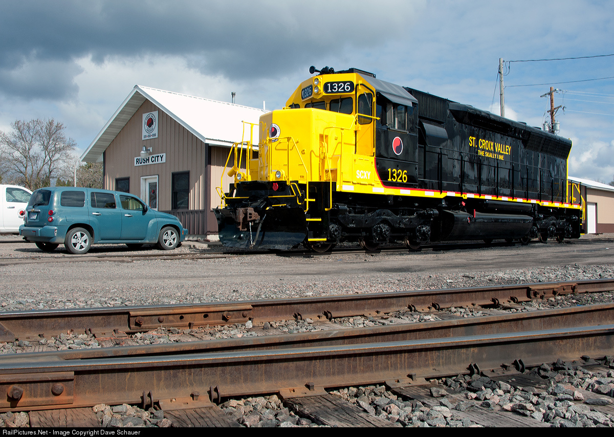 | Due to increasing shipments of fracking sand shortline St. Croix Valley is adding two rebuilt 3,000-hp six axle units to its roster The first to arrive after repainting at Horicon, Wisconsin was 1326 (ex-SP 8840). This shortline runs on the former NP mainline that linked Duluth and St. Paul, hence the NP-inspired paint scheme. This route was nicknamed the "Skally" and that moniker is incorporated in the lettering on the side of 1326. The also have two geeps that are painted in this scheme. |