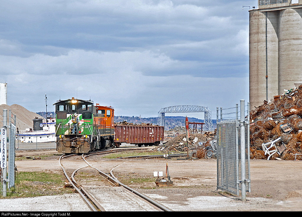 A very brief break in the clouds allows a shot of a BNSF switch crew grabbing a loaded gondola of scrap metal from the Azcon Scrap Yard along Duluth's busy waterfront on Rices Point.