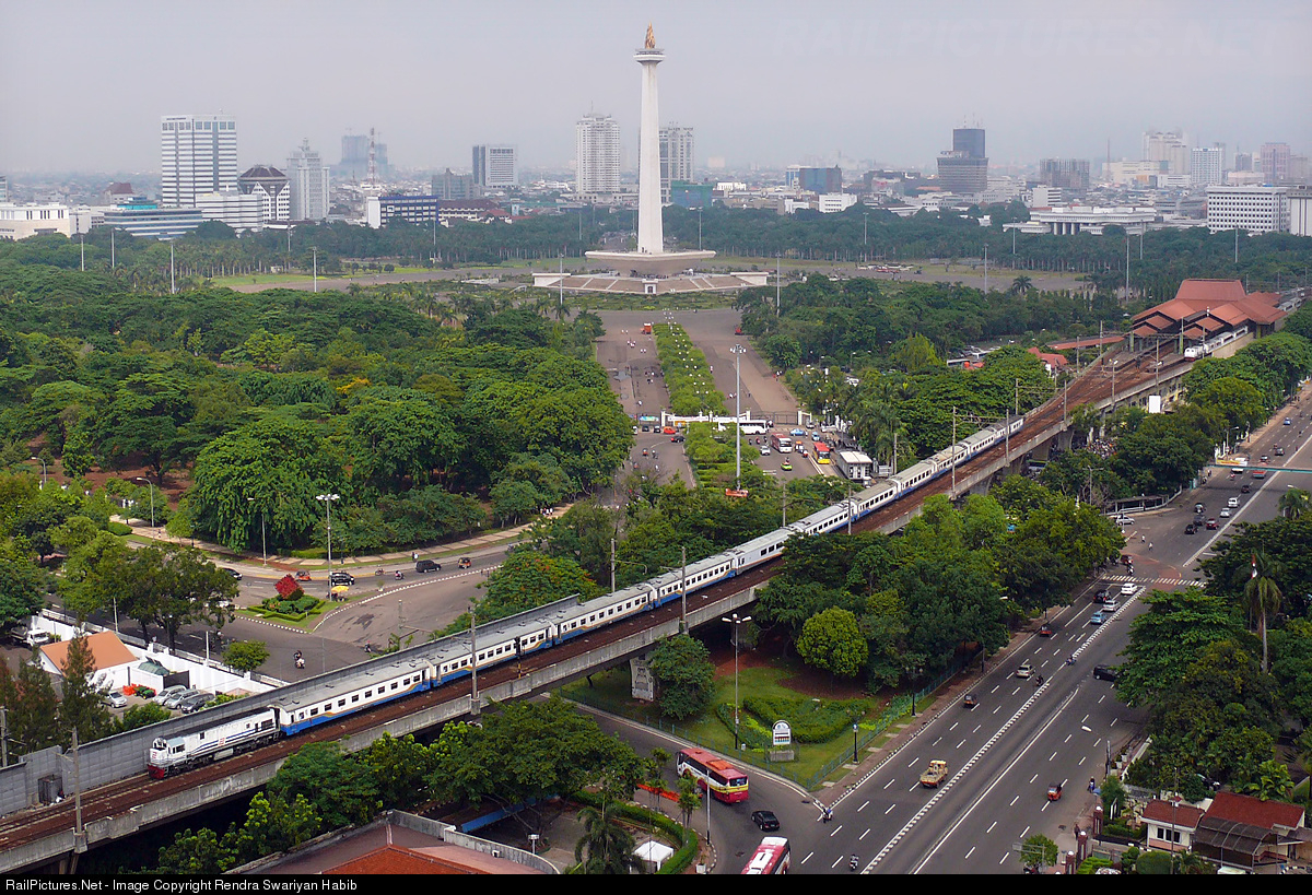 The birdview of Cirebon Express when departing Gambir Station with Monas as background