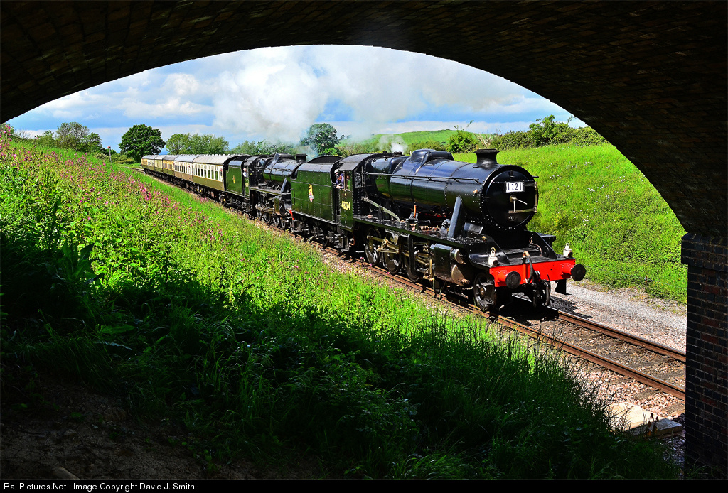 | The Gloucestershire Warwickshire Railway late May steam gala this year has been blessed with less than ideal weather.In a rare burst of sun,ex Turkish Railways 8F No. 48274 (a number it never carried before) and "Black 5" 45379 head the 11.10 Cheltenham to Laverton working. |