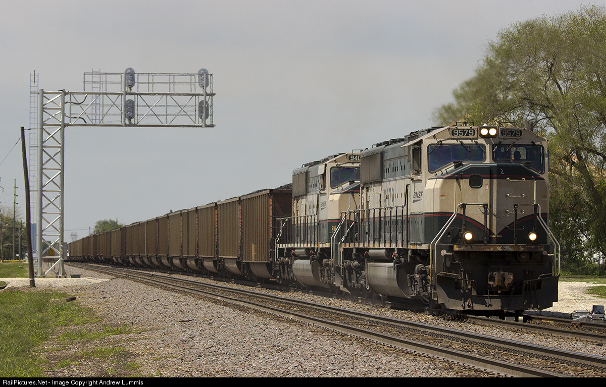 | Two BN/BNSF executive MAC's head North into Galesburg after getting a new crew. It's pretty nice seeing BN SD70MAC's running together after being on the rails for quite some years |