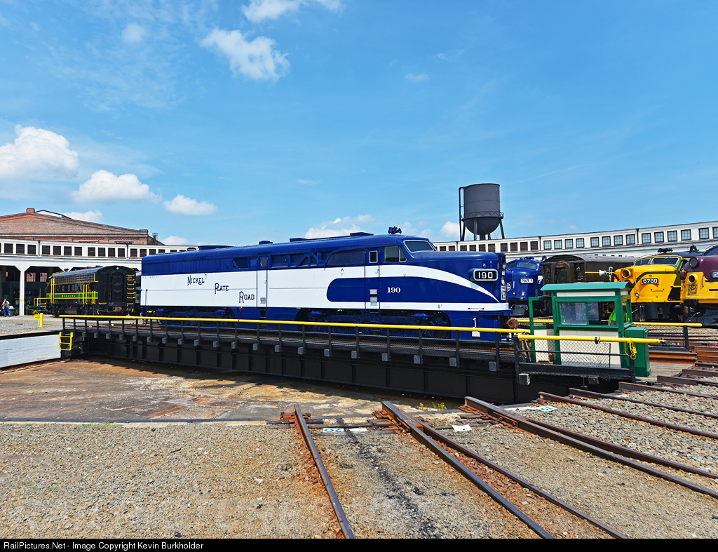 | Doyle McCormack's Nickel Plate Road Alco PA-1 is the star of the show at the Streamliners at Spencer event at the North Carolina Transportation Museum. The locomotive is seen taking a spin on the turntable on Thursday afternoon. Nickel Plate 190 was originally built for the ATSF as #62-L was built for Santa Fe in December 1948 and delivered in the red and silver warbonnet paint scheme. In 1975 it was rebuilt by Morrison-Knudsen and sold to the Delaware & Hudson, where it became #18, before serving a stint in Mexico. Doyle saved the locomotive and restored it to the railroad that his father worked for and to the specific locomotive number that he experienced his first cab ride in. Beautiful work Doyle and team. |