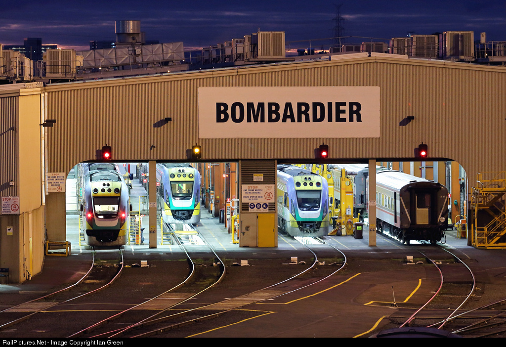 VLocity railcars undergo servicing at the carriage maintenance depot near Southern Cross Station.