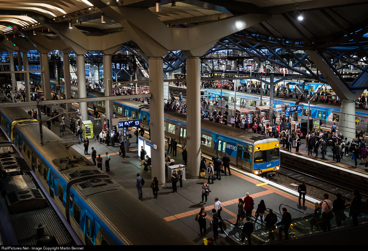 The suburban platforms at Southern Cross, as seen in the middle of a Monday afternoon peak.