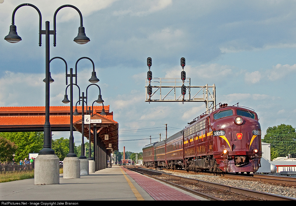 | Bound for Charlotte, PRR E8 #5809, with a number of high rollers in tow, crosses over at the Salisbury, NC, Amtrak station. |