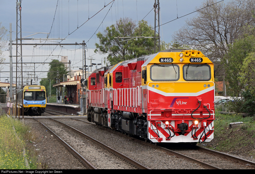 | Fresh from overhaul and repaint at Newport Workshops, N465 leads N458 through Spotswood en-route to Southern Cross. |