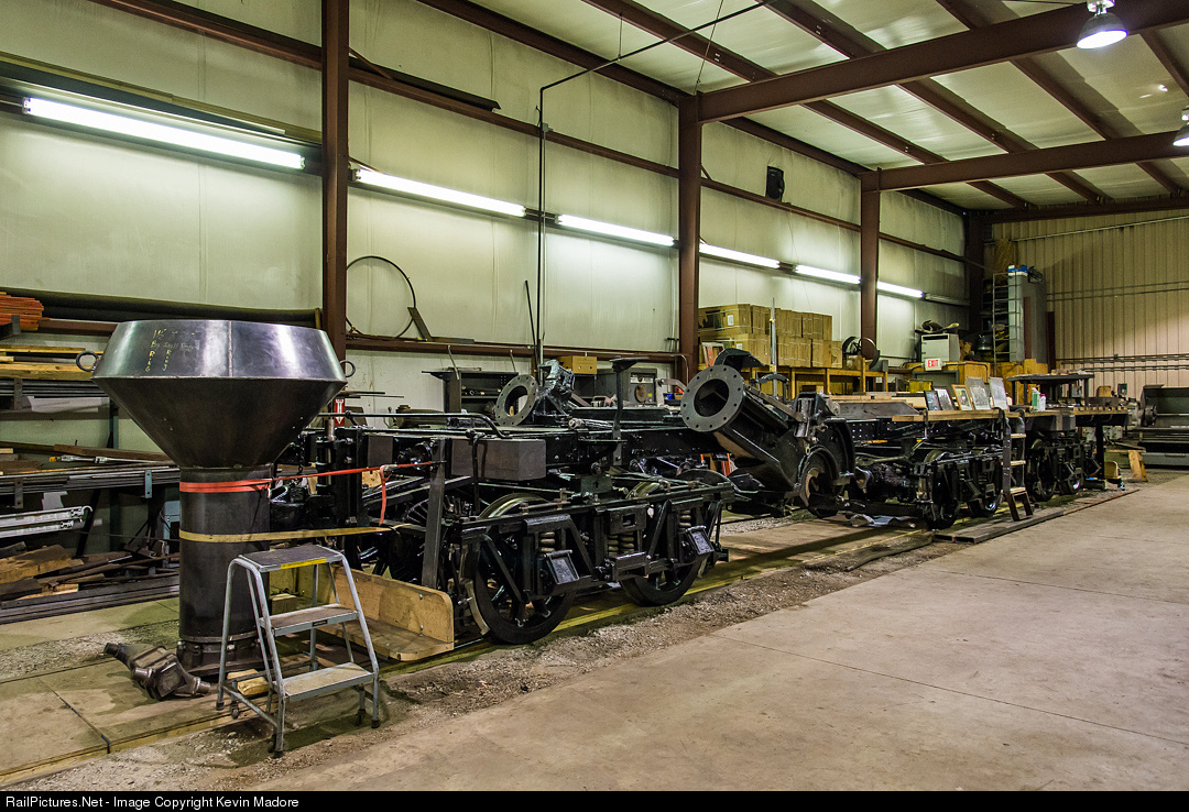 In the early 2000s, the MSRLHA decided to try and restore the locomotive for active service on the Cass Scenic Railroad. Doing so would not only revive an important historical artifact, but also give Cass at least one operating example of all three major types of geared steam engines. It has been over a decade, but the project is finally starting to enter its final phase. The frame and trucks are largely done. That's what you see here. In addition, other large components have been constructed, such as the cab, fuel bunker, and water tank. A replacement boiler for the original, worn-out piece has been found and overhauled. All that really remains before final assembly can begin is a few major components from the drive train that still need work. If all goes well, this engine could be ready in a couple of years.