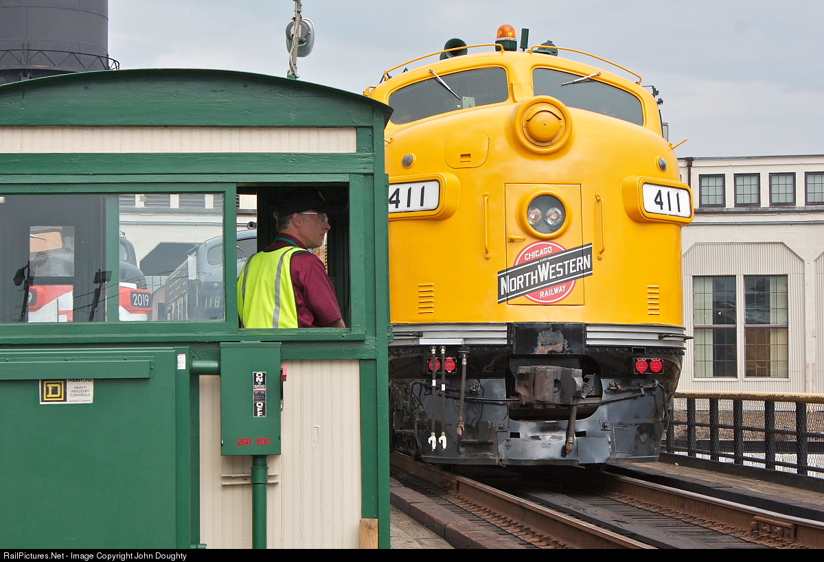 | One of the best seats in the house. The gentleman at the controls of the Spencer Roundhouse turntable takes CNW 411 for a spin. It is a tough job, but someone has to do it! Hats off to the staff at Spencer for putting on an amazing event. |