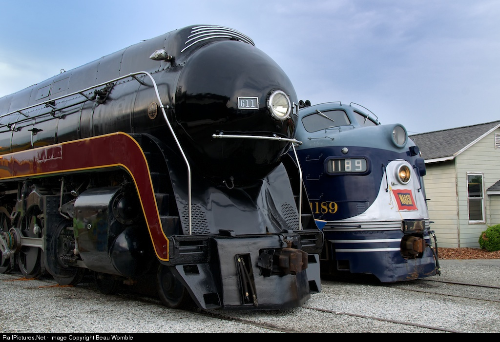 First day of the Streamliners event in Spencer N.C. The J sits by the Wabash F3 A unit. The 611 waits to be moved onto the turn table for Fridays event and ceremonial first bolt turning for restoration.