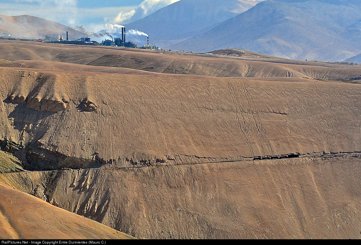 Tatoo Train and Potrerillos Foundry: Awesome trip between Montandon and Potrerillos metric gauge line, in Diego de Almagro city (North of Chile). FERRONOR train loaded with copper concentrate from Llanta, with a maximum slope of 3.9% in this section, confronting the abyss and the danger, already soon get to Potrerillos foundry, and with its characteristic and complete black color seems a tattoo on the wall of the mountain.