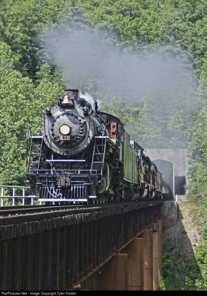 | On the 50th anniversary of the Southern Steam Program. Norfolk Southern ran a special with Southern 630 at the point from Chattanooga to Oneida and back on Saturday June the 7th. It would have been nice to see 4501 doing the honors, but hey..with main line steam you can't go wrong. With that being said. Southern 630 heads southbound across the Emory river at Nemo after blasting out of the south portal of Tunnel 22. |