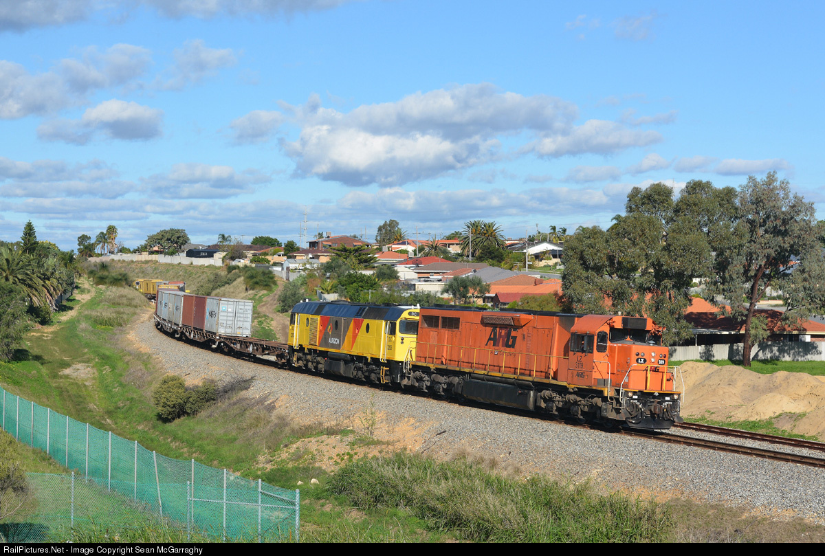 | LZ3119 is paired up with DC2205 on the North Quay containerised grain service 5144 seen through suburban Spearwood on its way to North Quay, Fremantle. |