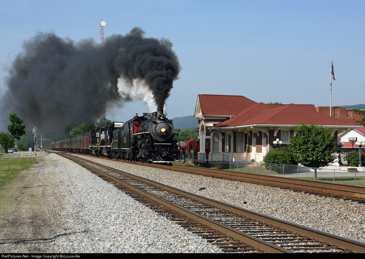 | Southern 630 steam engine leads the Steam Anniversary special on the way to Oneida, TN passing the nice looking Depot in Spring City, TN. |