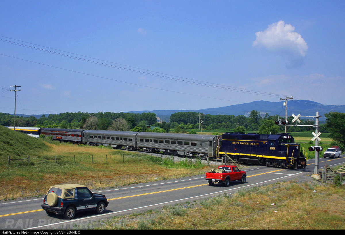 RailPictures.Net Photo: SBVR 100 South Branch Valley Railroad EMD GP38-3 at Moorefield, West Virginia by BNSF ES44DC