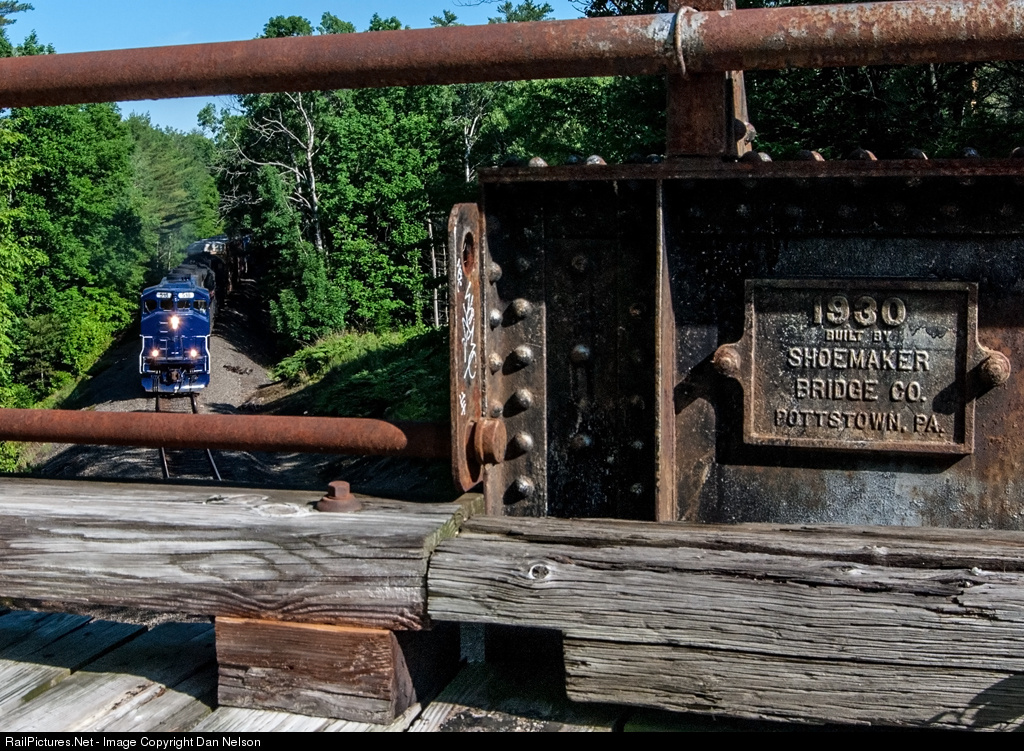 On a warm summer morning, RUPO approaches an old wooden overpass built by Shoemaker Bridge Company.