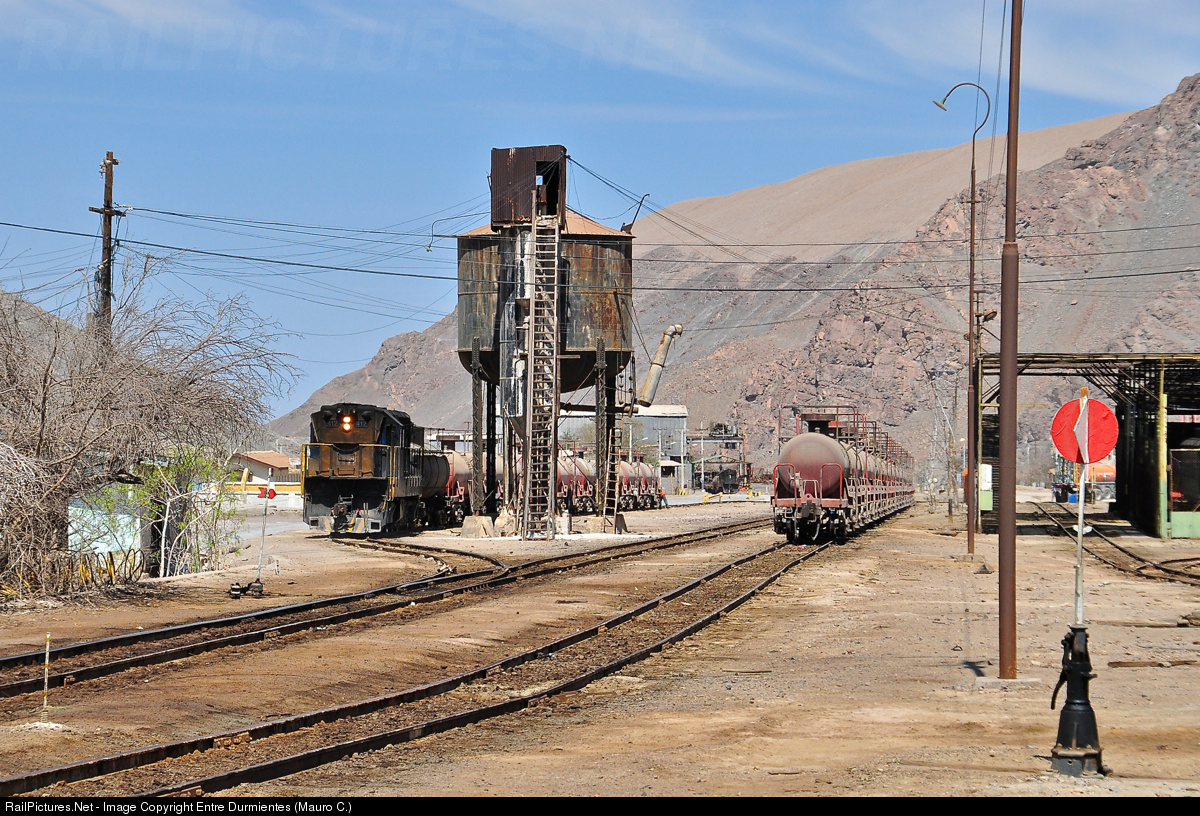 | Llanta yard and former station, and a FERRONOR train loaded with sulfuric acid is ready to leave for CODELCO Potrerillos foundry. |